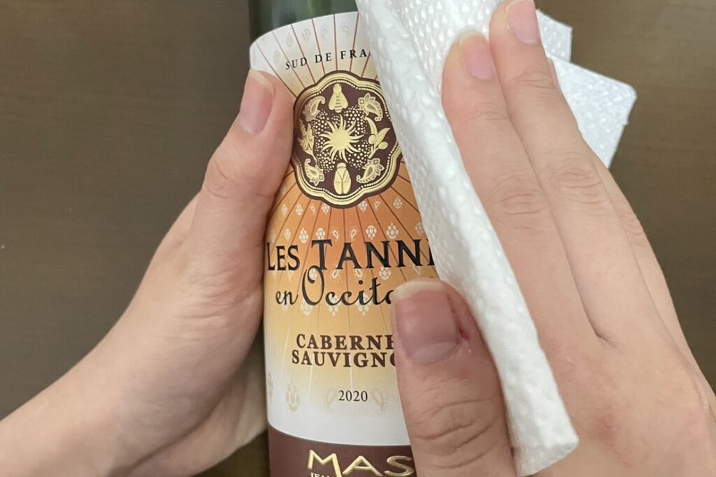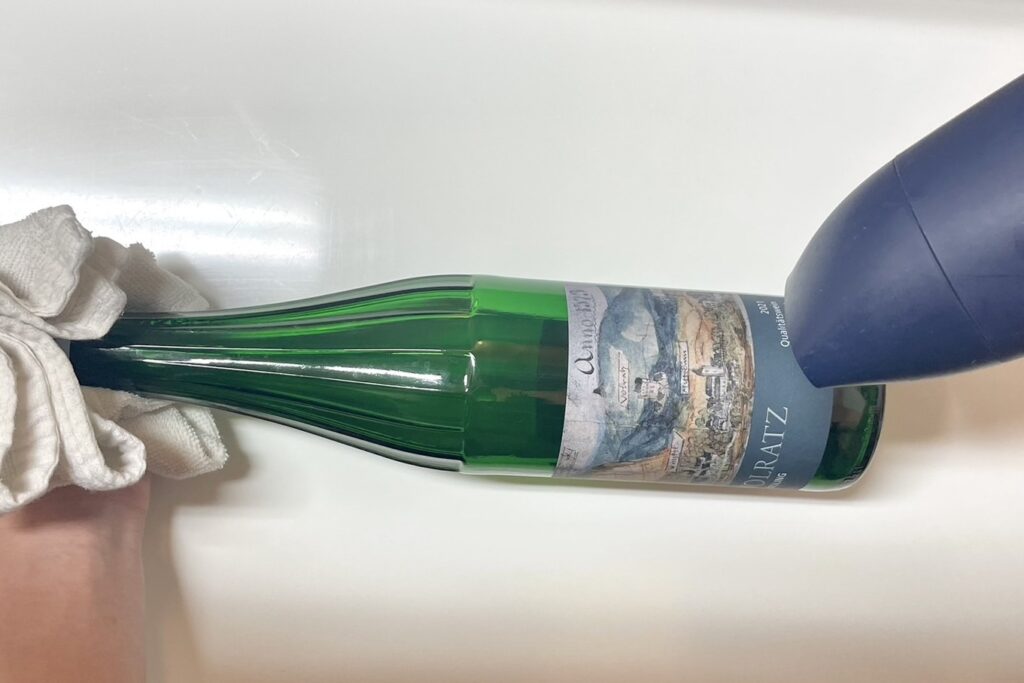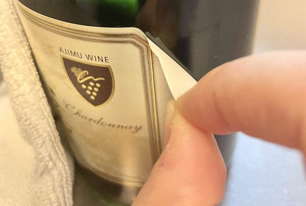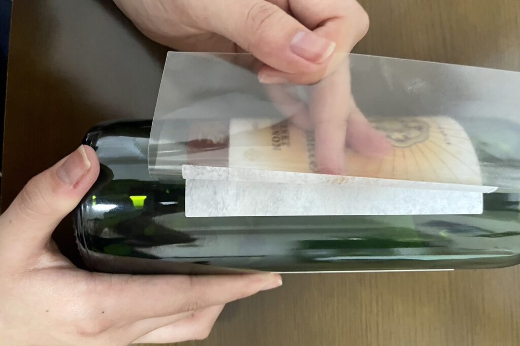 この方法は、「ビンテージラベルが別になっていてもOK」という点に加えて、「ワインが入っている時でも剥がせる」というのがポイント。
