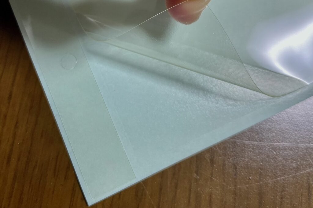 はがすときにラベルを曲げすぎると、折り目がついてしまうよ。